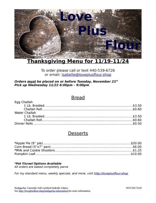 Love Plus Flour Thanksgiving & Weekly Menu for November 19