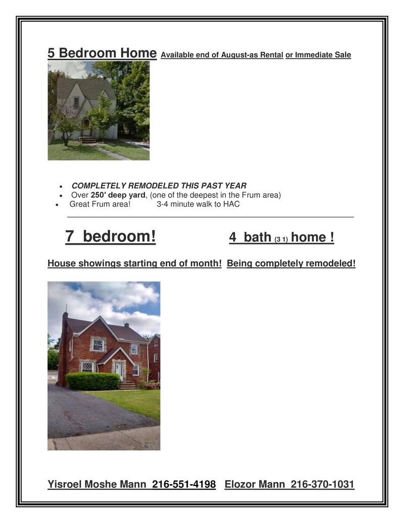 5 Bedroom Home! Available End of August as Rental or Immediately as Sale
